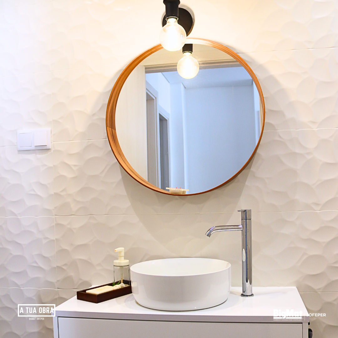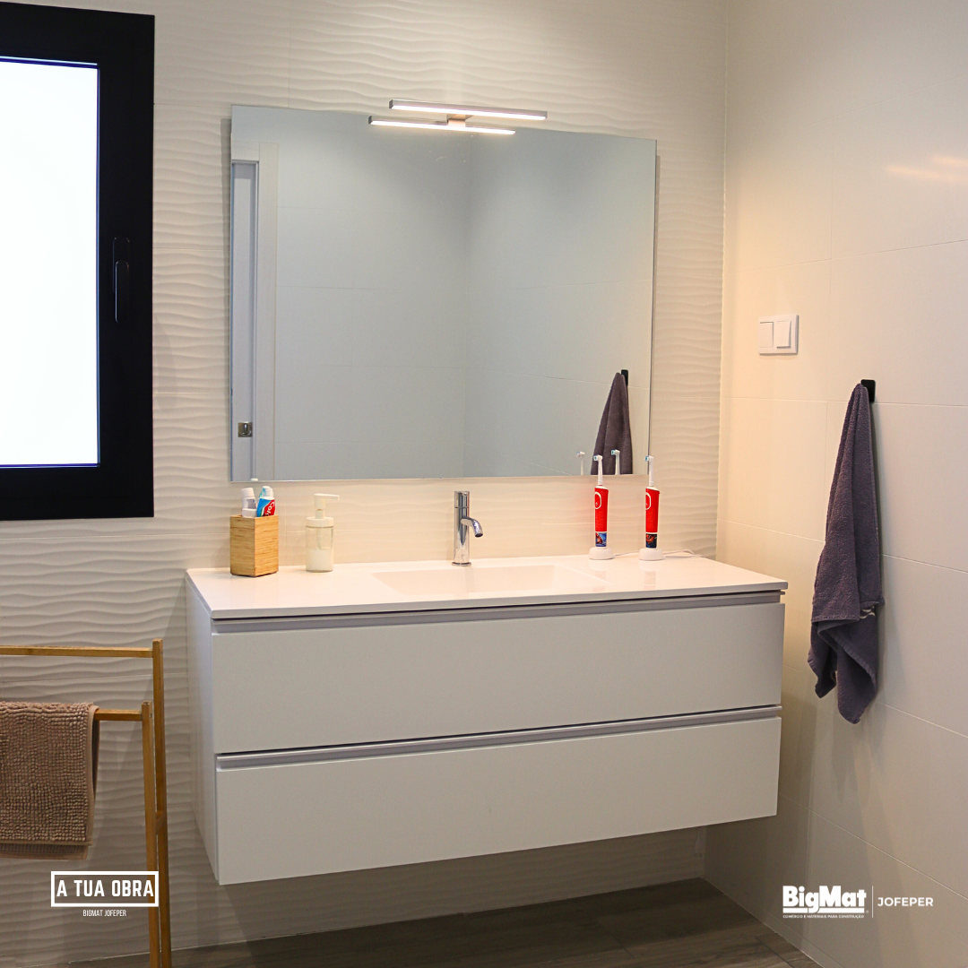 Este projeto foi concebido para criar um ambiente equilibrado e contemporâneo, onde a harmonia dos materiais assume um papel central. O revestimento Love Genesis White destaca-se pela sua luminosidade e estética intemporal, proporcionando uma base clara e sofisticada ao espaço. As torneiras Leaf da Bruma acrescentam um toque de elegância e design cuidado, aliando funcionalidade, conforto e durabilidade. Os mosaicos OAK Tortora da Gresart introduzem textura e profundidade, enriquecendo o ambiente com subtileza. Os móveis Inside Axis complementam o conjunto com linhas modernas e soluções práticas de arrumação, enquanto o azulejo Primacer Shasta Arena confere calor e equilíbrio cromático, resultando num espaço harmonioso, atual e visualmente coerente.