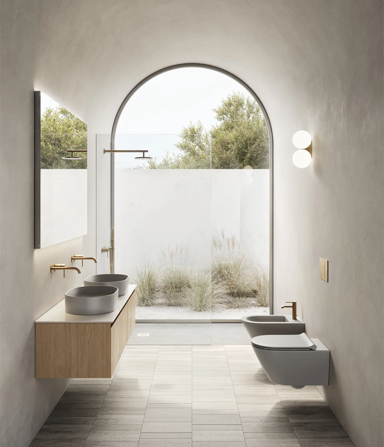 Modelos ao chão e suspensos caracterizados por linhas minimalistas, elevada qualidade cerâmica e design tipicamente italiano.