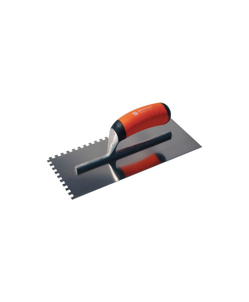 Espátulas dentadas em aço temperado, com tratamento anti-ferrugem com punho em madeira.