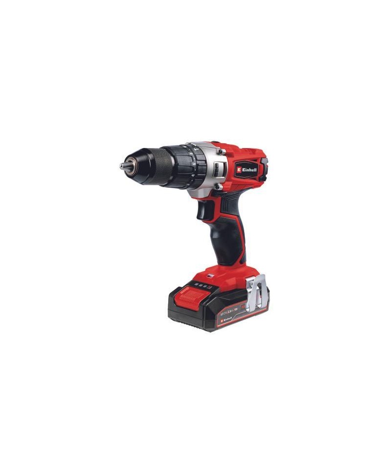 O berbequim de impacto a bateria TE-CD 18/2 Li-i +22 Einhell (1x 2,5 Ah) é a mais versátil nas três disciplinas do faça você mesmo mais importantes. As funções de aparafusamento, perfuração e percussão são combinadas de forma ideal nesta ferramenta sem fio. Como membro da família de produtos Power X-Change, oferece liberdade sem fio - a qualquer hora, em qualquer lugar. A engrenagem de 2 velocidades proporciona ao utilizador parafusos bem apertados e uma perfuração rápida. Além disso, a função de percussão incluída garante uma aplicação articulada para todos os trabalhos em casa, oficina e garagem. A taxa de impacto ideal é fornecida na respetiva velocidade. O mandril de perfuração de aperto rápido de manga única (13 mm) é feito de metal sólido. Seja bit ou broca, os acessórios adequados podem ser trocados rapidamente graças ao bloqueio automático do fuso. A embraiagem de deslizamento de torque garante um trabalho sensível para inserções delicadas. As baixas rotações em materiais macios não são, portanto, um problema, graças aos 20 níveis de torque. O Softgripp ergonómico suporta uma aplicação confortável, mesmo durante períodos de utilização mais longos. Deste modo, a área de trabalho é iluminada por uma luz LED. O conjunto está imediatamente pronto para utilização graças aos amplos acessórios. O escopo de fornecimento inclui o prático clipe para cinto, uma bateria PXC de 2,5 Ah com carregador rápido e o amplo conjunto de bits e brocas com 22 peças, tudo bem arrumado na prática mala E-Box Basic.