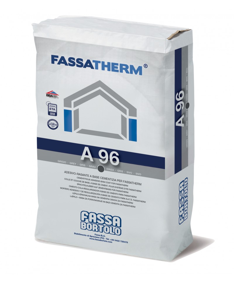 Utilização || A 96 é utilizado para colar e regularizar painéis de polistireno, Styrodur e Styrofoam, painéis em lã mineral, nos sistemas de isolamento Capote. É utilizado para aplicar redes de armação e para regularizar superfícies de betão e elementos pré-fabricados.