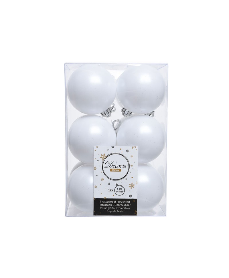 CAIXA DE 12 BOLAS BRANCAS DECORATIVAS PARA ÁRVORE DE NATAL