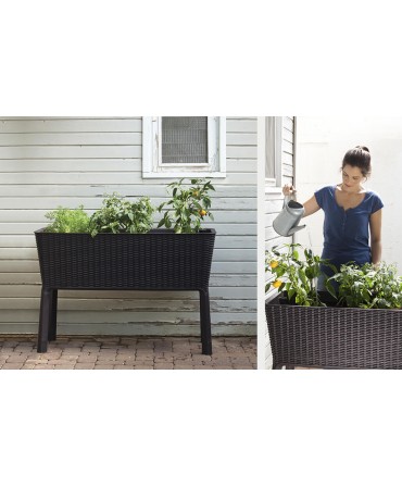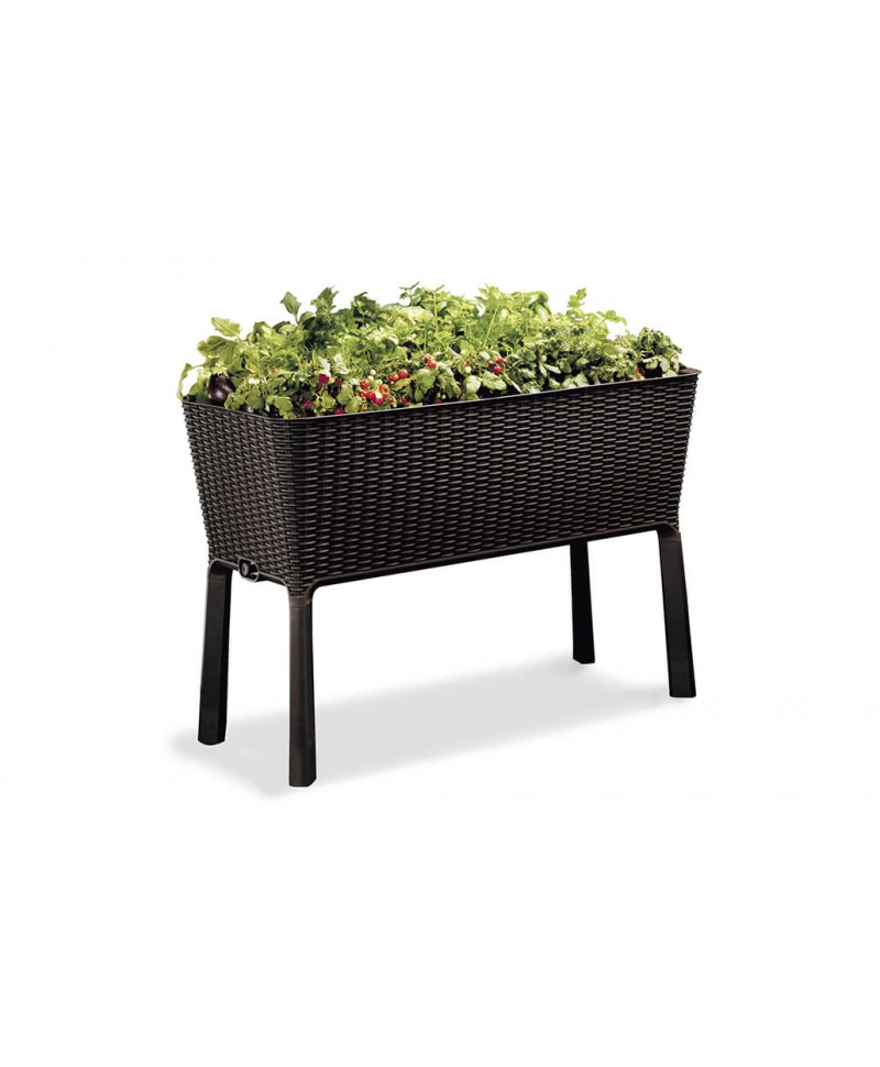 Mesa de cultivo ideal para o cuidado ideal de suas culturas na varanda ou terraço, devido ao seu tamanho. Design ergonômico que evita ter que se inclinar para cortar plantas, fertilizar etc. Inclui válvulas de descarga que regulam que, se você derramar muita água, ela transborda Inclui torneira de drenagem de água Possui sistema de irrigação Especificações : Cor marron Medidas: 114 x 49,3 x 75,7 cm (Comprimento x Profundidade x Altura) Peso: 8 kg Capacidade de 120 L Feito de propileno injetado com imitação de vime. Grande durabilidade e resistência.