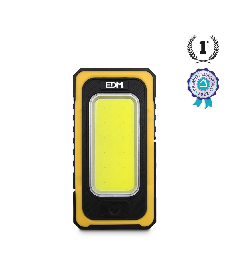 Lanterna LED Solar Recarregável com Gancho e Íman COB 10W 750lm. Inclui uma Luz Superior Adicional de 3W 70lm, Bateria Lítio de 4000mAh. Função Powerbank. Tempo de Carga com Cabo USB 5-6h. Design Ultra Fino. IP20. Função de Carga Solar: Ideal para Situações de Emergência, Carregando Aproximadamente 12 Horas = 20% Carga da Bateria Aprox. Autonomia Aprox. de 6 A 8 Horas. EDM