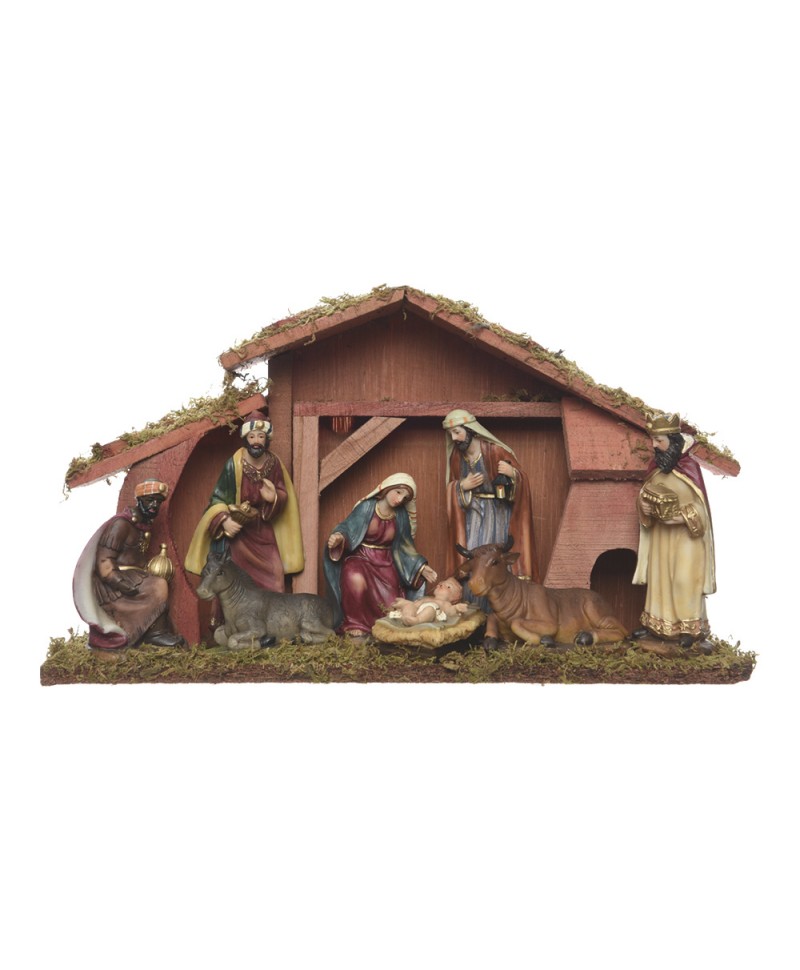 PRESÉPIO 8 FIGURAS (MARIA, JOSÉ, MENINO JESUS,3 REIS MAGOS, VACA, BURRO) FIGURAS DE 15CM COM MUSGO