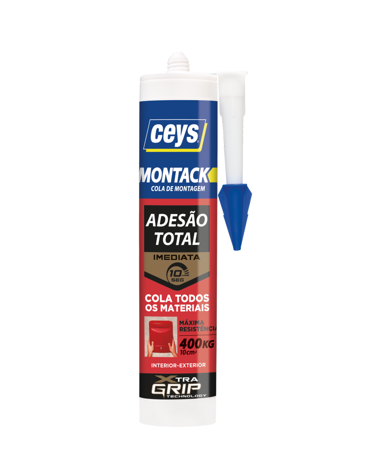 Cola de montagem com Xtra Grip Technology que garante ADESÃO TOTAL IMEDIATA, para colar de forma RESISTENTE e FÁCIL. Máxima polivalência. TODOS* os materiais: porosos e não porosos, incluindo superfícies delicadas e húmidas. Interior e exterior. (*Não indicada para polietileno (PE) e polipropileno (PP), PTFE.)